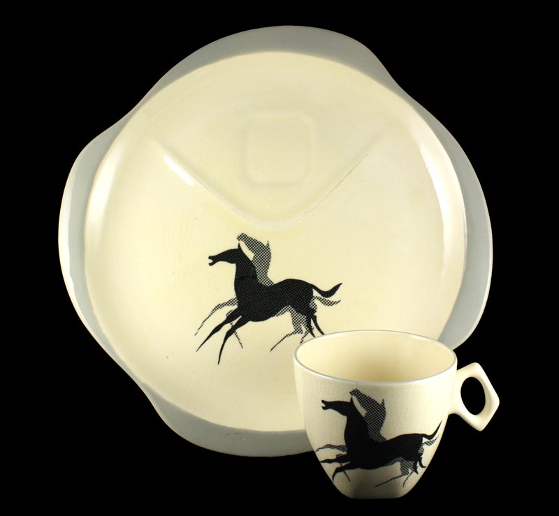 John Beswick Ltd ware ‘Tennis set’ from the 1960s. The prancing horse decoration makes the link to the Beswick ceramic equestrian models.