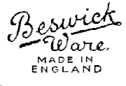 The Beswick businesses (up to 1969) produced domestic earthenware, dinnerware, teaware, teapots, vases, and commemorative and advertising wares. The company, however, is best known for its animal models—domestic animals, birds, fish etc—produced in enormous numbers from the mid-1930s. Arthur Gredington and James Hayward were responsible for the modelling and finishing of the early animal models and they were joined by Albert Hallam, who started as an apprentice mould maker at age 14 and became the firm’s leading modeller and mould maker in the 1950s. Hallam designing many of the well known animal models in addition to the uniquely-shaped vases, bowls and jugs of the period. Beswick’s best known products are the magnificent equestrian models produced over a long period, and the Beatrix Potter figures produced from 1947. The company’s mark was a simple printed ‘John Beswick, England’ or the familiar script ‘Beswick’ name.