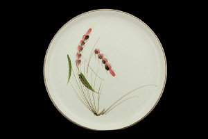 Glynbourne Ware was introduced in the early-1960s and whilst continuing the botanical inspiration and muted palette of the early Glyn Ware, is more recognizable as a mass-produced, but still hand-painted, product. There are similarities to the work of Charlotte Rhead.