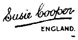The common Susie Cooper mark found on earthenware is the famous ‘leaping deer’ printed in brown (most commonly), green, pink, blue or black. The words ‘A Susie Cooper Production’ and ‘Crown Works, Burslem’ are usually present and many wares include a shape and or pattern number. A number cast into the earthenware body is the year of manufacture.