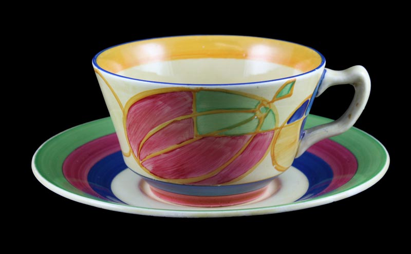 ‘Melons’ was an early Clarice Cliff ‘Bizzare’ design. Here it is executed on a traditional Newport Pottery ‘Athens’ shape cup and saucer.